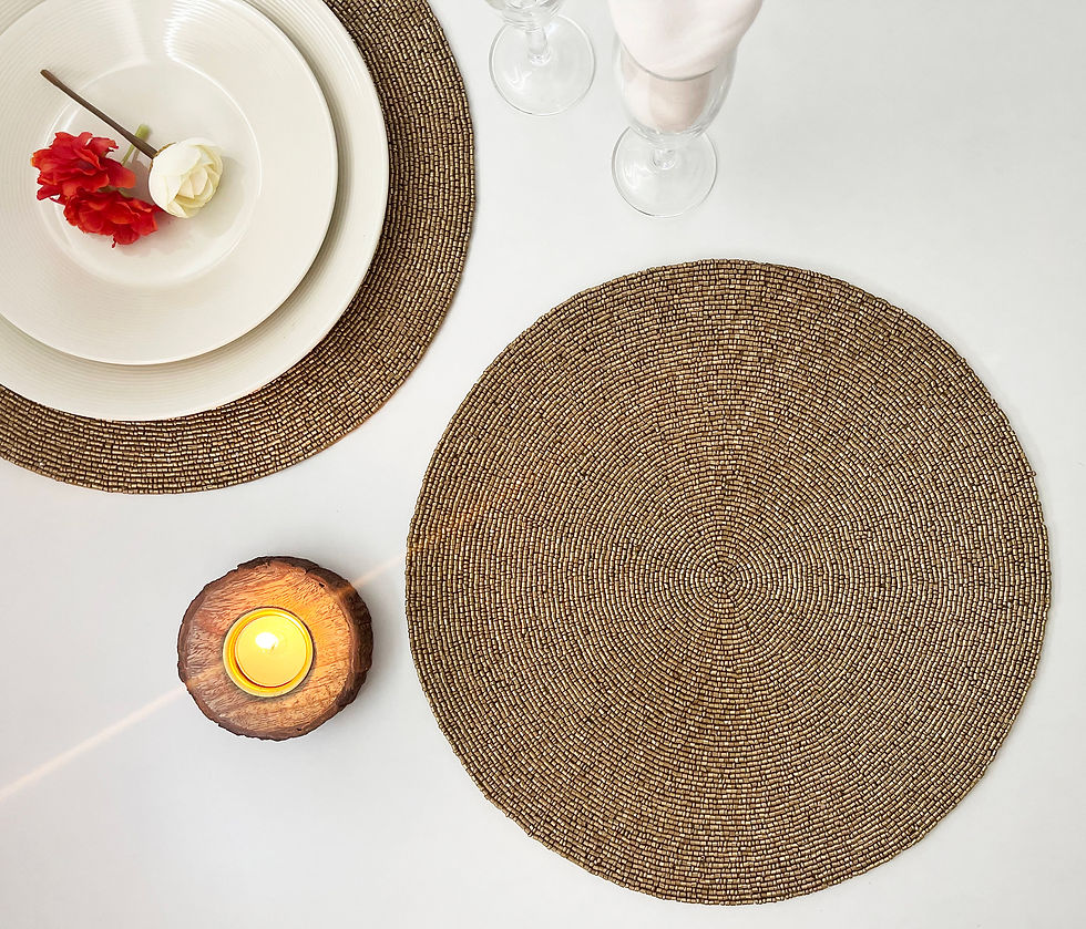 Set of 4, Handmade bead placemat, living room table decoration, gold