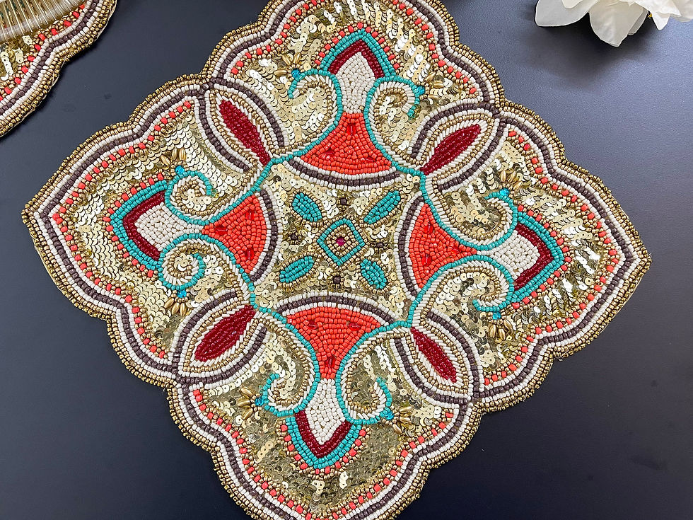 Set of 4, Luxury Handmade bead placemat, bead and sequin tablemat